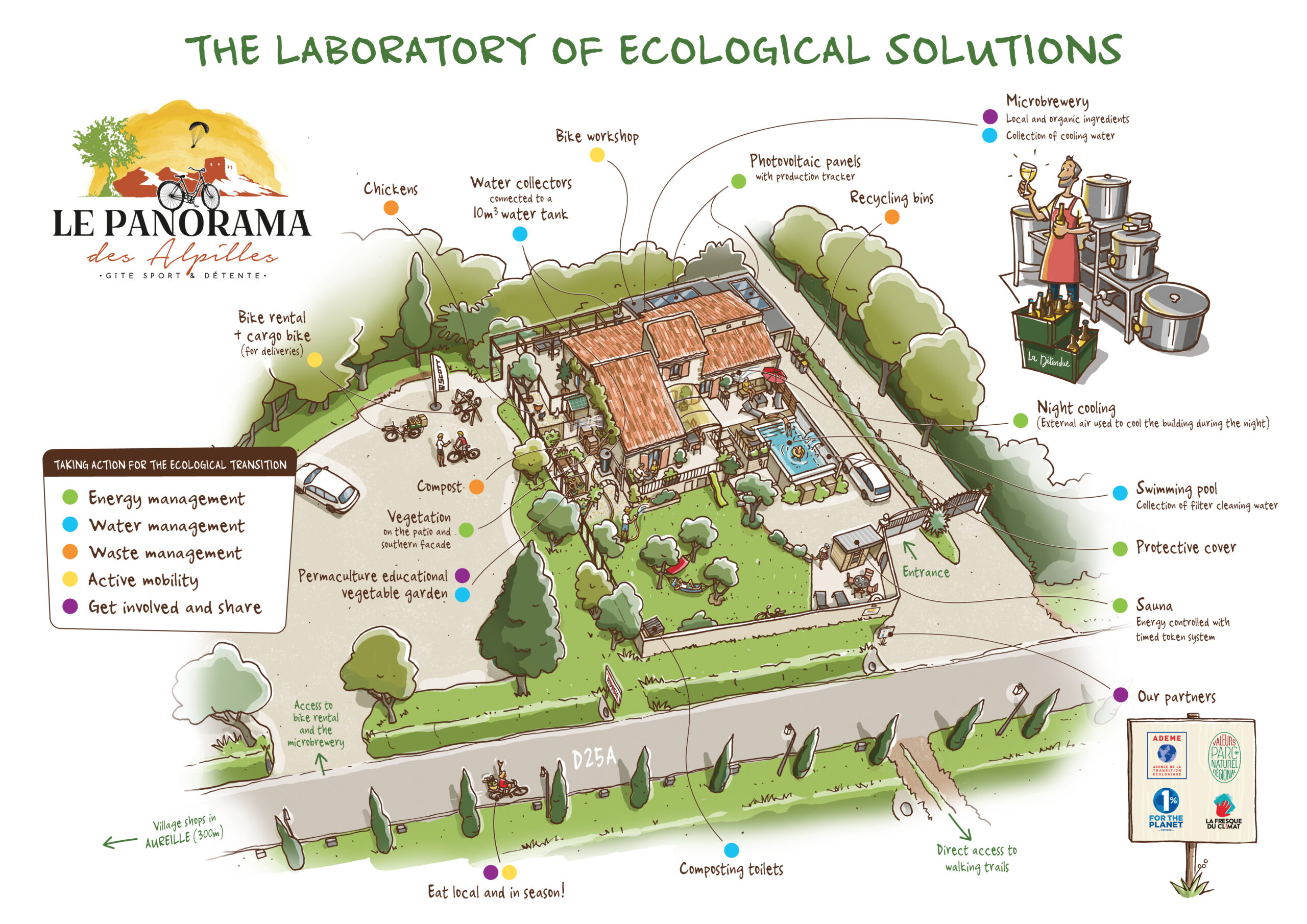Today, we position ourselves as a laboratory for eco-friendly solutions: a way to introduce our guests to changes in practices or solutions that we find interesting. For example, we recently modified the garden to reduce the amount of grass that needs watering and increase the number of plants and shrubs that are drought-resistant and promote biodiversity.